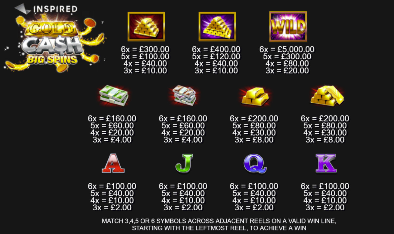 • Money Symbols: Special gold cash symbols appear with random cash values that are awarded when collected.